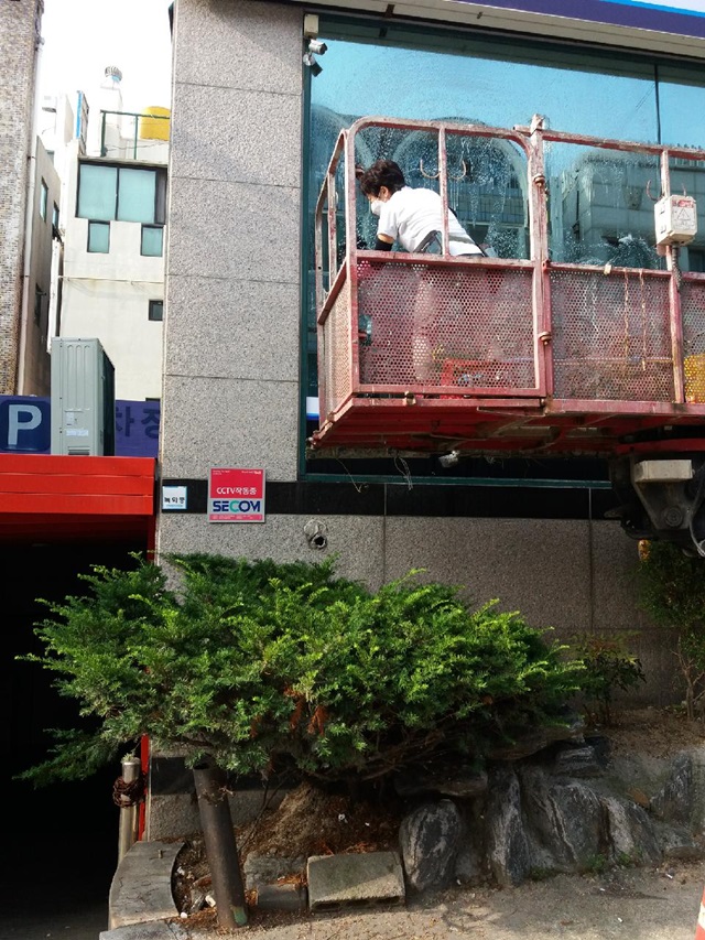 외부 창 청소 작업